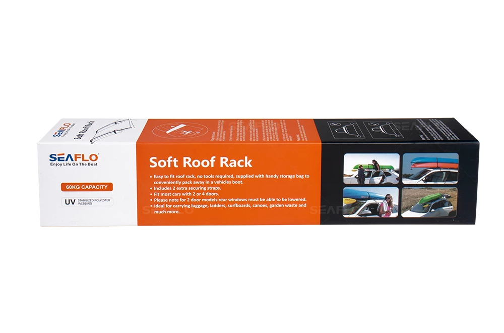 The Seaflo Soft Kayak Car Roof Rack is made of Nylon + EVA material – durable and lightweight with a 60kg loading capacity. This easy-to-fit roof rack includes 2 securing straps and a bag for easy storage. Fits most 2-door and 4-door cars.