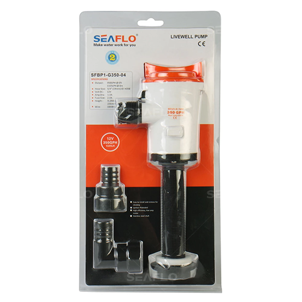 | Seaflo Vertical Livewell Pump 12V 350GPH | SFBP1-G350-04 | 350GPH | 12v | 2A | 19mm/3/4″ | 1m |